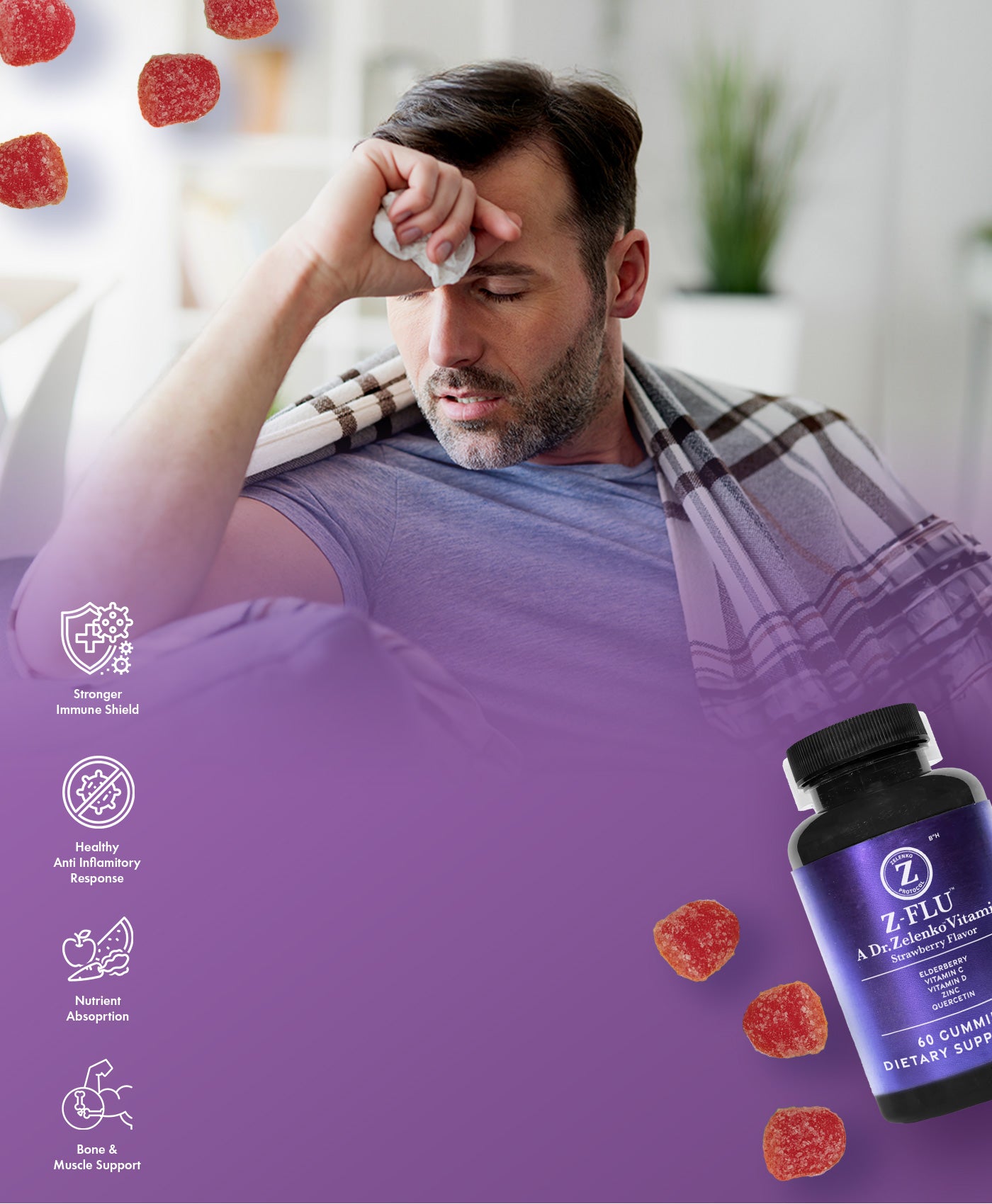 Z-Flu™ was developed with real, all-natural ingredients. The ingredients in each gummy of Z-Flu™ weren't chosen at random – they were chosen specifically for their natural abilities which may help support your immune system and provide natural defenses when you need it most.