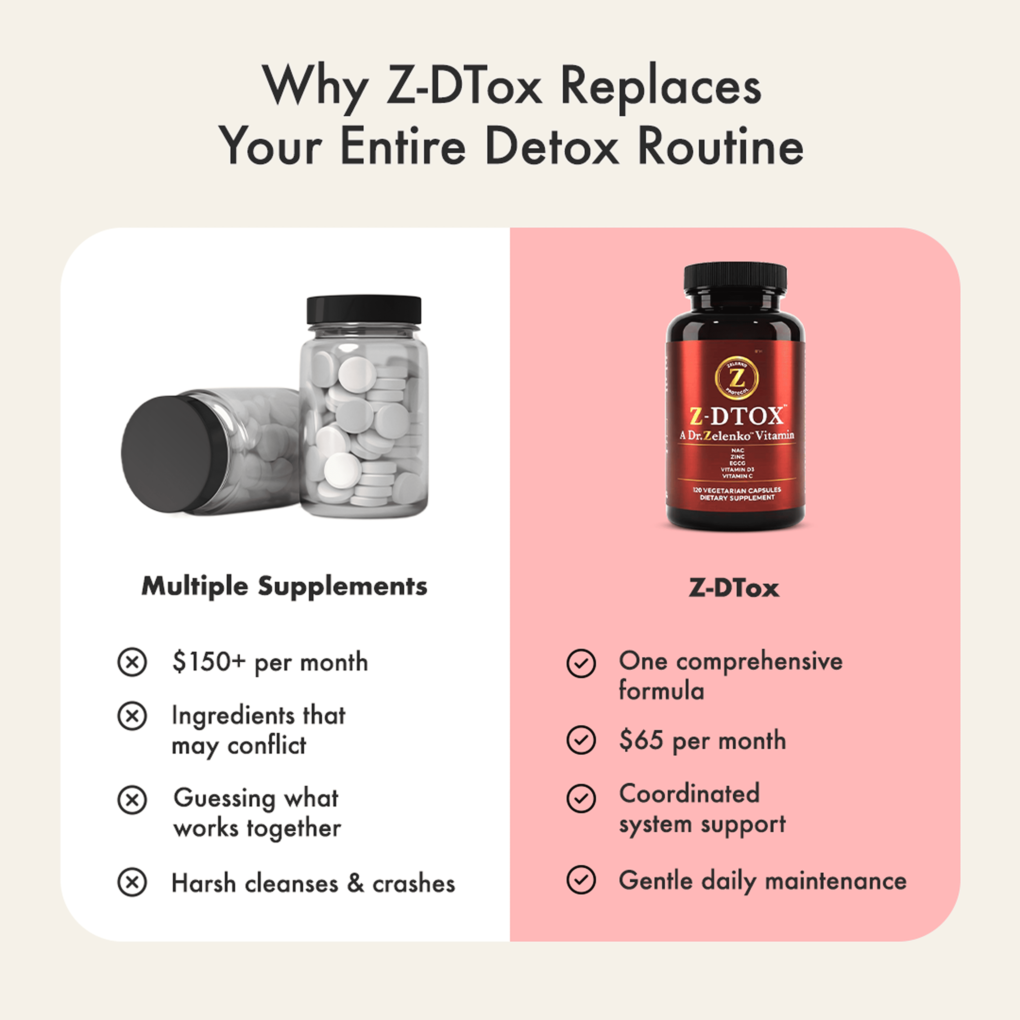 Dr. Zelenko formulated Z-DTox™ with premium, all-natural ingredients to bolster immune health and support the body’s natural detoxification from harmful environmental elements.