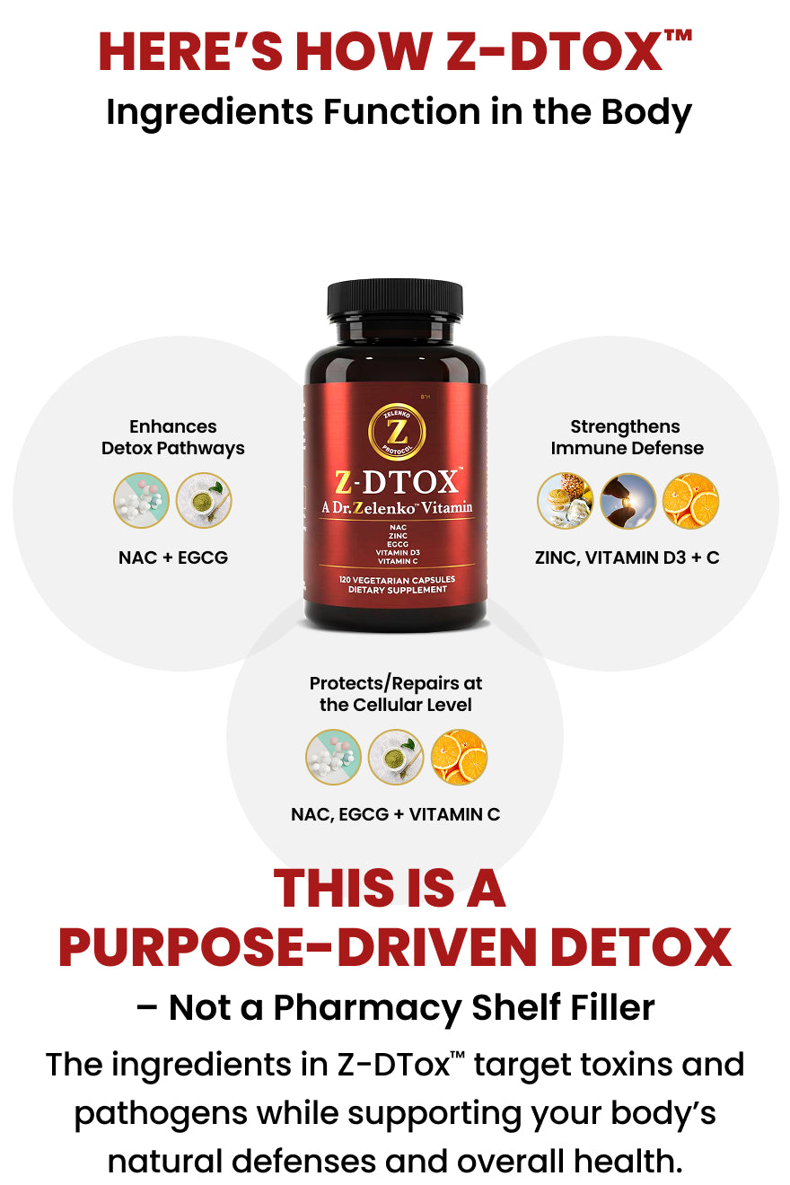Z-DTox™ is formulated to support your body’s natural ability to eliminate environmental toxins, neutralize pathogens, and restore optimal immune and cellular health.