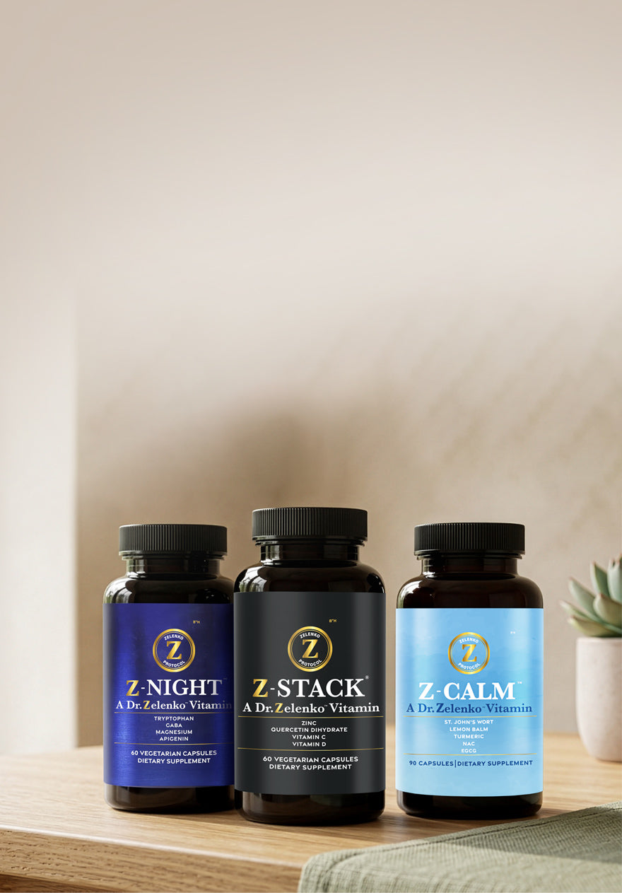 The Calm + Sleep Bundle combines Z-Stack®, Z-Calm™, and Z-Night™ to support daytime stress balance, immune resilience, and nighttime recovery.