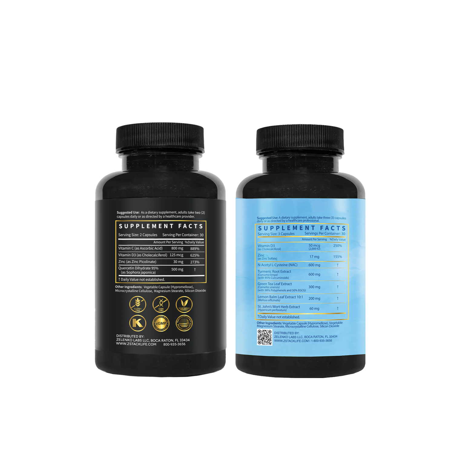 Take two (2) Z-Stack® capsules in the morning. Take three (3) Z-Calm™ capsules daily or as directed by a healthcare professional.