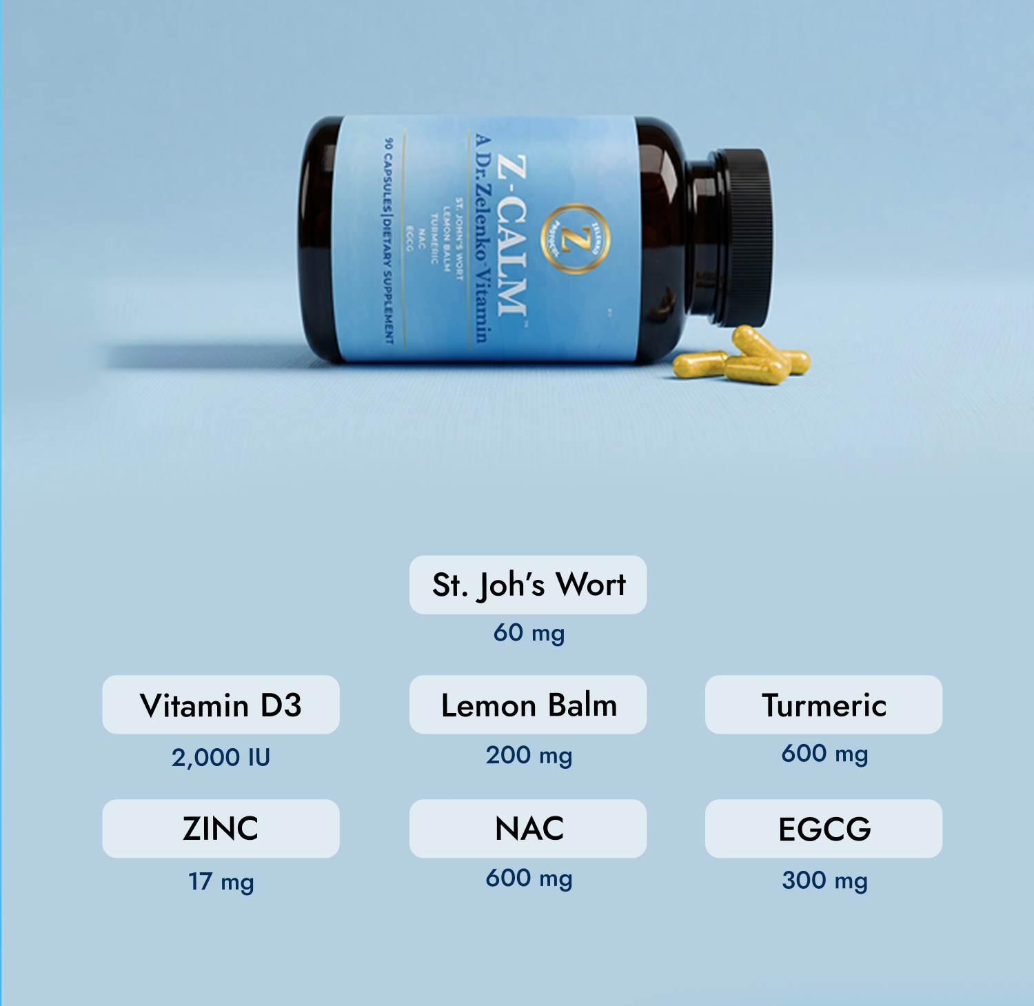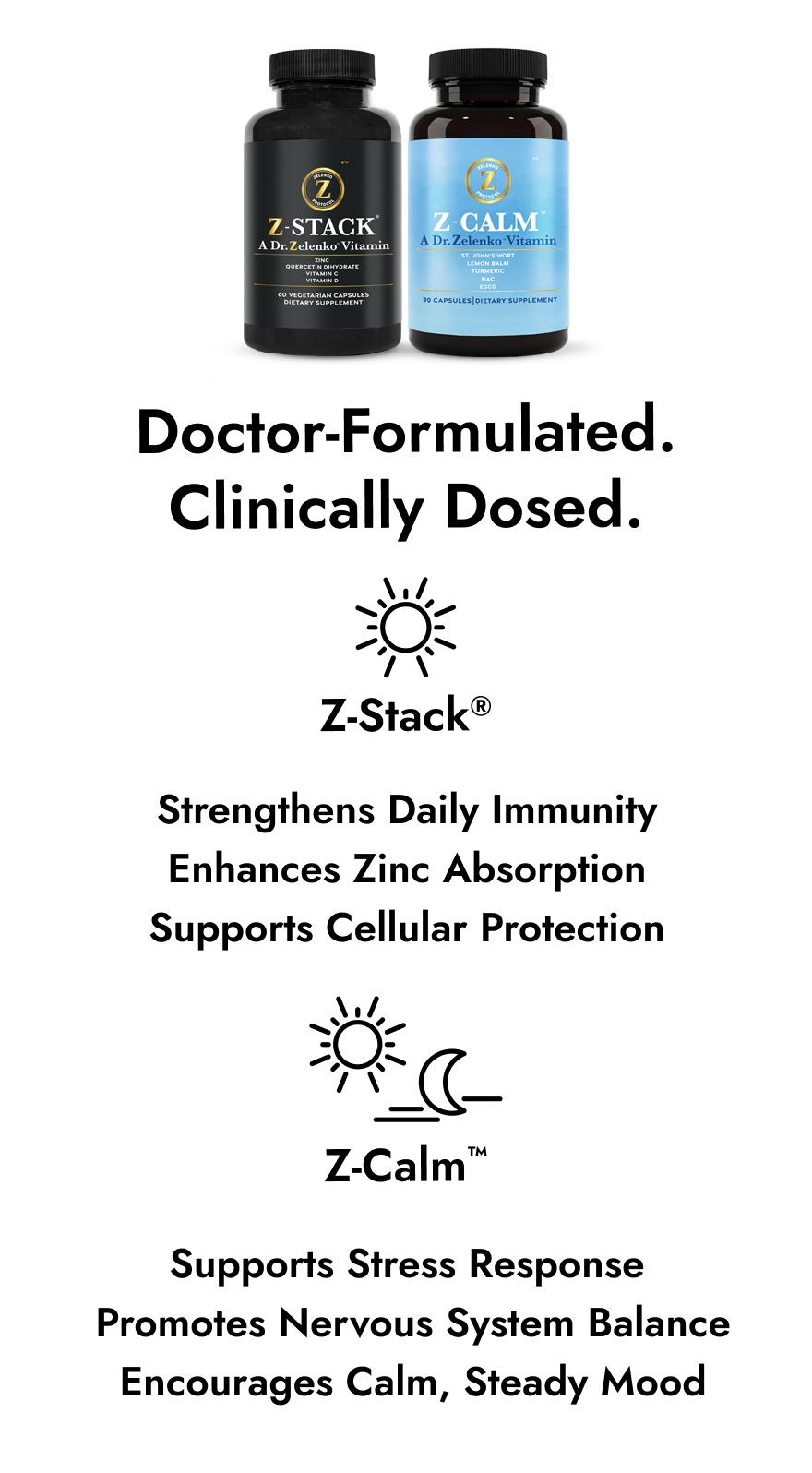 Z-Stack® delivers key nutrients for immune support, while Z-Calm™ helps regulate stress and promote a balanced, relaxed state without drowsiness.