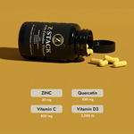 • Strengthens immune defense with zinc, quercetin, vitamin D3 + C