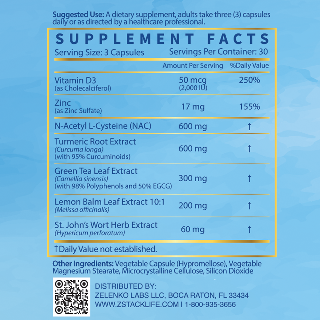Zinc, NAC, and EGCG work together to boost immunity, support cells, and defend against environmental stress.